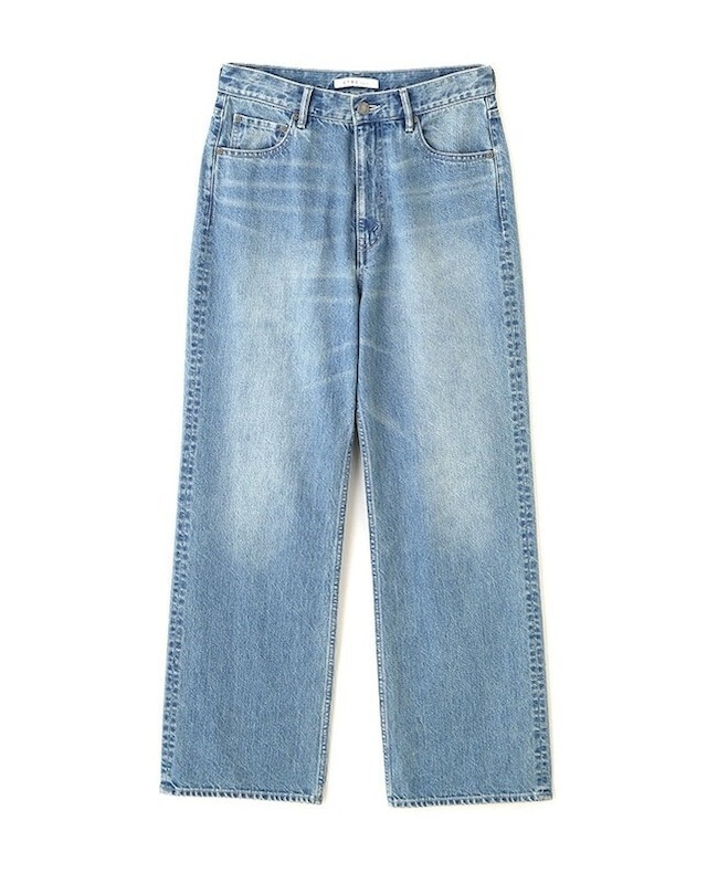 ほどよいヴィンテージ感をまとった、絶妙な加工が魅力のハイライズストレートデニム。綿100%のデニム生地を使用、ほど良い重さと自然な落ち感を兼ね備えた風合いが特徴。しっかりとした肉感がありながらも硬すぎず、穿き込むほどに身体に馴染んでいく素材感です。春らしい強めのブリーチカラーは奥行きのある色落ちを表現し、ブラックはシックで洗練された印象に仕上げる等、それぞれ異なる表情を楽しめるのも魅力。さりげなく存在感を放つオリジナルのタックボタンなど、細部にまでこだわりを詰め込んだ一本です。深めに設定したライズと長めの股下が、腰位置を高く見せながら縦のラインを強調し、すっきりとしたストレートシルエットを構築。ヒップから裾にかけてはほどよくゆとりを持たせることで、脚のラインを拾いすぎず、抜け感のあるバランスに仕上げています。トップスをタックインした際にもウエスト周りが美しく決まり、フロントやバックスタイルまで計算されたデザイン。ベーシックでありながらも、加工感やシルエットでさりげない個性を感じさせる一着です。フェミニンなフリルブラウスや軽やかなトップスと合わせたカジュアルなスタイルはもちろん、 コンパクトなカットソーやジャケットを合わせたクリーンな着こなしにも好相性。着こなし次第で幅広いスタイリングを楽しめるデニムパンツです。 COLOR/BLUE SIZE/S・M S ウエスト74cm ヒップ99cm 股上29.5cm 股下69.5cm わたり周り64cm 裾周り47cm M ウエスト78cm ヒップ103cm 股上30cm 股下73.5cm わたり周り66cm 裾周り49cm MATERIAL/綿100%