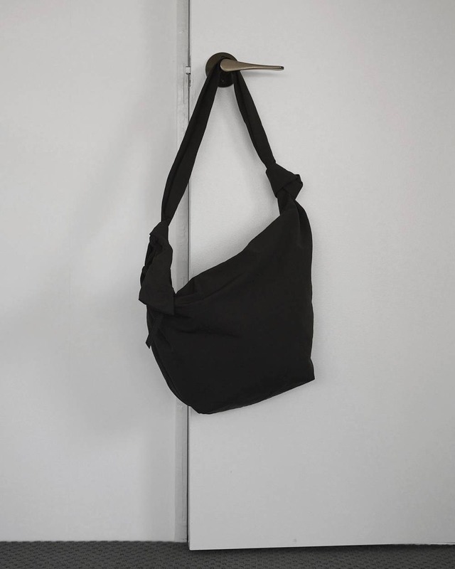 昨年もご好評いただいた軽くて柔らかいナイロン素材で仕上げた、ショルダーBAG。人気のブラックに加え、ニュアンスあるアイスブルーが新色で登場。持ち手はお好みの位置で結んで、長さを調節することができます。薄手のA4サイズが入るくらいの大きさで、内側にはミニポケット付きです。お手入れもしやすく、デイリー使いにおすすめなBAGです。 COLOR/BLACK SIZE/FREE 高さ33㎝ 幅22㎝ マチ11㎝ 持ち手90㎝ MATERIAL/【表地】ナイロン100% 【裏地】ポリエステル100%