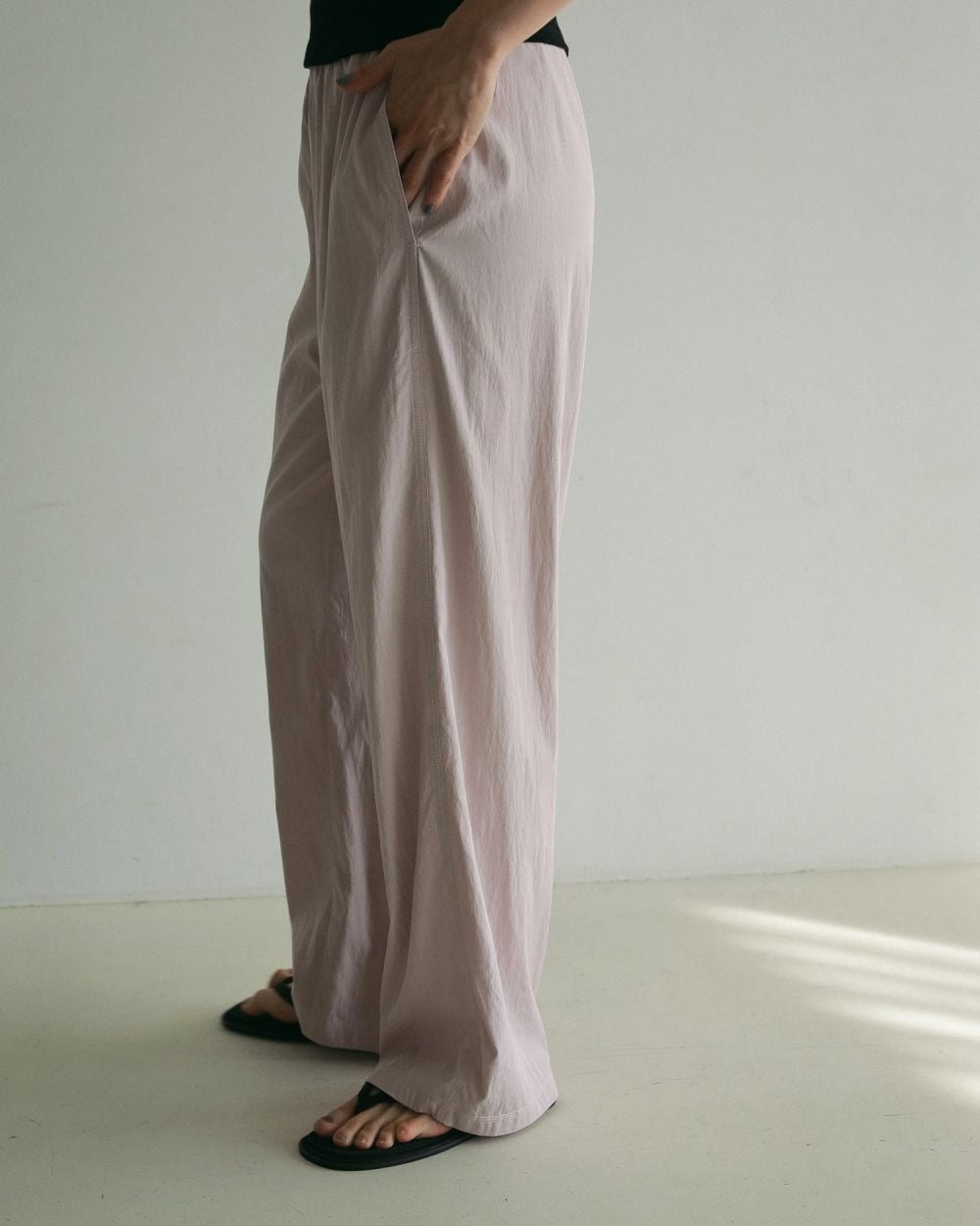 シャンブレー素材のカラーパンツ。ウエストはゴム仕様でラフに仕上げました。洗い晒したようなナチュラルな表情の素材で、柔らかな着心地が特長です。着回しやすいシルエットで、コーデの差し色としてもおすすめ。同素材のChambray Over Shirtsとセットアップで着ていただくだけで、こなれた着こなしに。