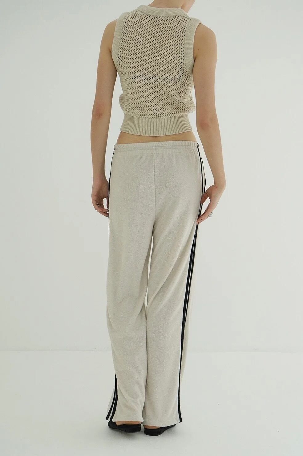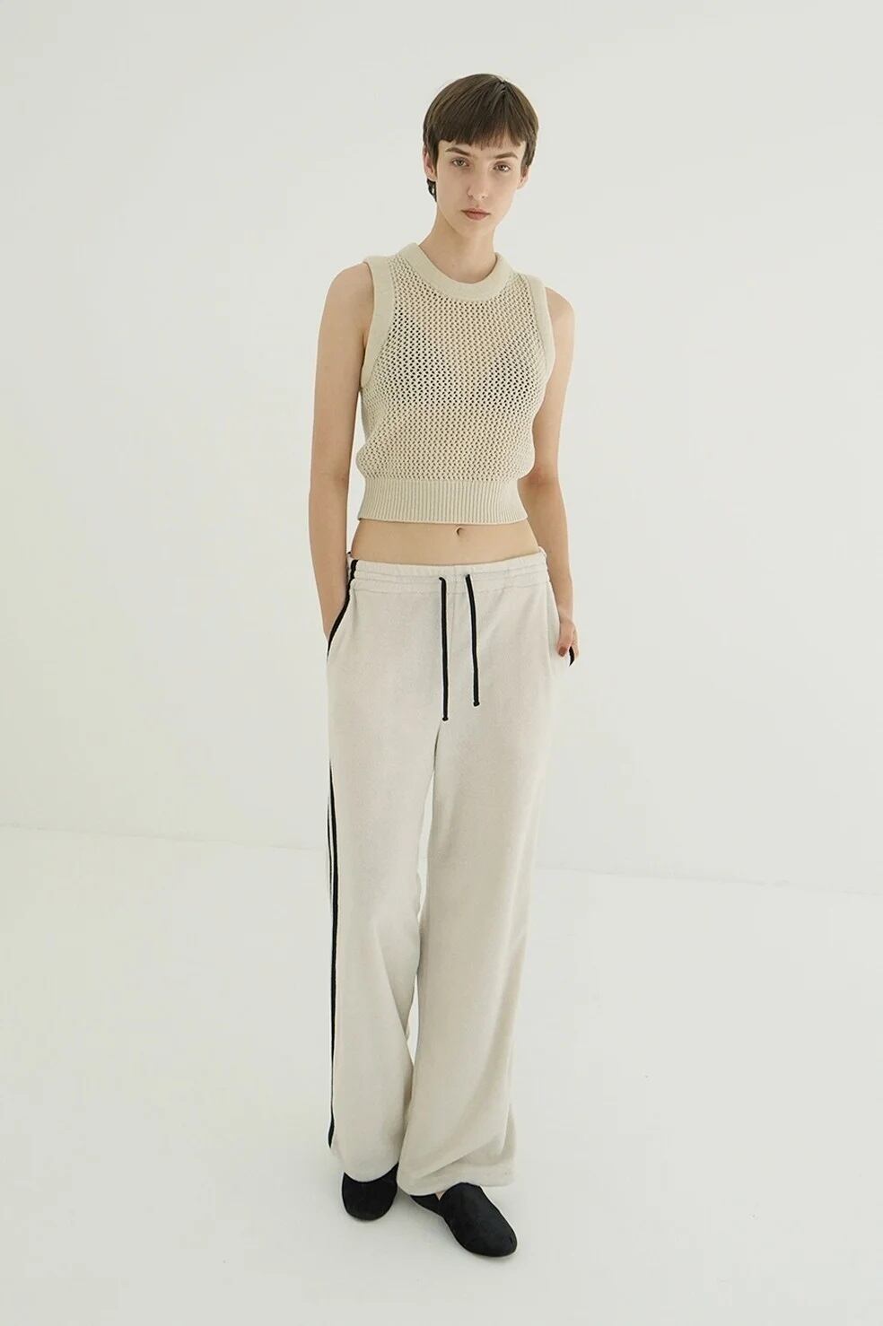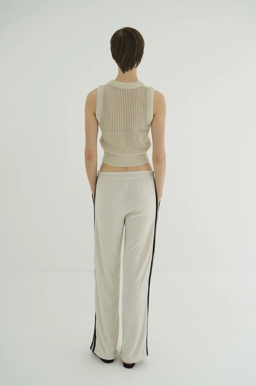 しなやかで肌馴染みの良い、上質な日本製パイル素材を使用したリラックスパイルラインパンツ。コットンとポリエステルの染め分けにより、色に凹凸感を持たせたユニークなデザインが特徴的です。脚のラインをスッキリと長く見せる、ウエスト上辺まで入った切り替えラインと、裾に施したドロストディテールで、ワイドにもバルーンにもシルエットを自在にアレンジ可能。ウエストはゴム仕様で、さらに紐で調整ができるため、リラックス感を持ちながらもスタイルアップを実現します。