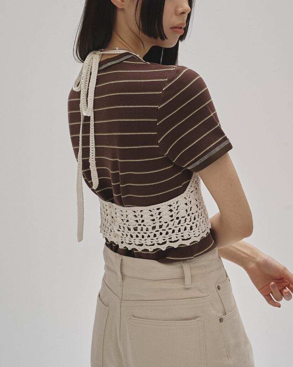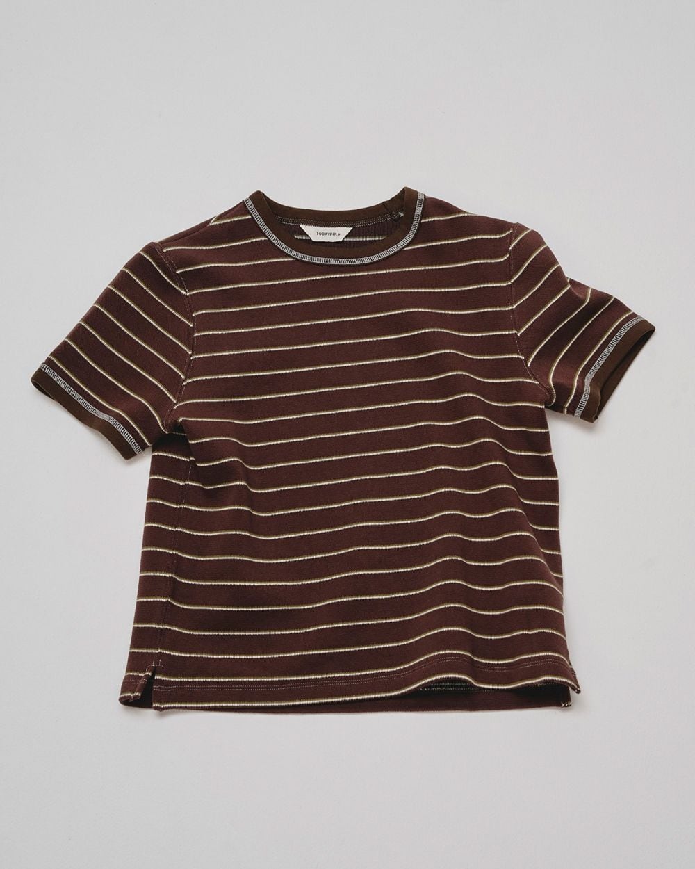 国内のオリジナルで編み上げたコットン混生地を使用したTシャツ。ポロシャツ生地のような立体的な編み目とさらっとした肌触りが特徴。それぞれ3色の糸を組みあわせた深みのある色味で、コンパクトなサイズ感に仕上げた一枚。