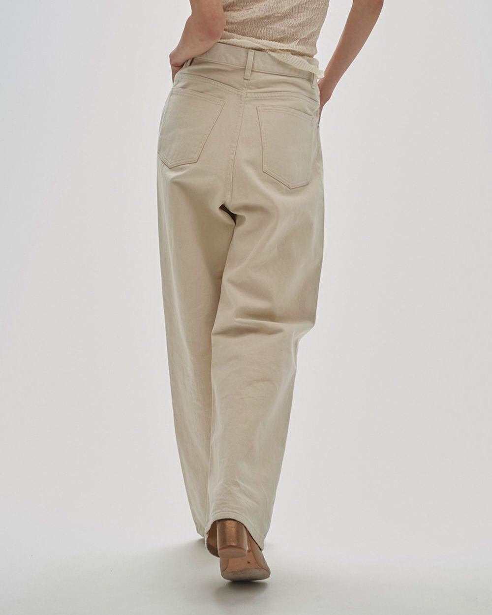 ストレートラインで全体的にゆるっとしたルーズ感のあるシルエットが魅力のカラーデニム。少し腰を落としてマニッシュな雰囲気で履いていただくのがおすすめで、TODAYFULならではのオリジナルカラーで染めたニュアンスカラーは様々なトップスと好相性な一枚です。