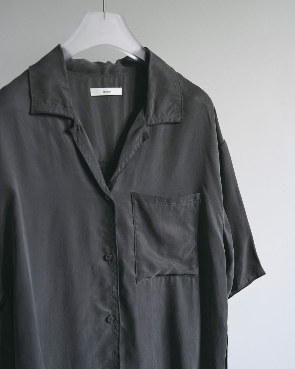 落ち感のある柔らかく滑らかな素材で仕上げた開襟シャツ。オーバーなシルエットで抜け感ある着こなしに。細かなステッチワークと端を繊細なメロウ始末で仕上げ、シンプルながら、さりげないディテールが際立つ一着。