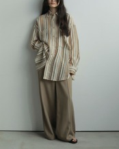 日本の桐生で織り上げたオリジナルのストライプ生地を使用したオーバーシャツ。全体はシアーに仕上げ、ライン部分はモールヤーンを使い立体的なストライプにしています。切り替え部分に、カットオフされた無地のシアー素材を挟み込んでいるのもポイント。ゆったりとしたサイジングの抜け感あるシルエットです。シンプルなボトムに合わせるだけで映える一枚です。