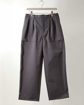 蝶理(株)の高伸縮機能糸TEXBRID®をハイゲージで編み立てたダンボールニット素材を用いたワイドパンツ。軽量、伸縮性に優れながらも、形状記憶的な張り感とコシを併せ持つことで、シルエットがしっかり出る特徴があります。前身頃に底マチ付きのパッチポケットをあしらいカジュアルな雰囲気ではありますが、素材の特性上すっきりと上品に仕立て映えしています。後ろベルトのみにエラスティックバンドを使用したバックイージー仕様。