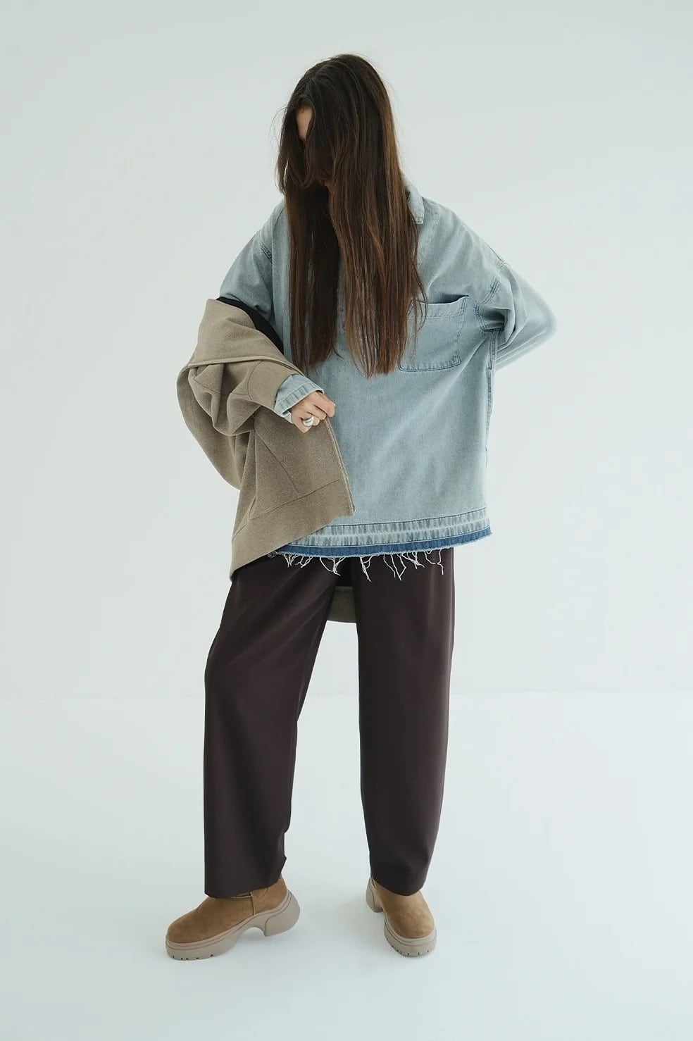 毎シーズンご好評いただいているCLANE定番のテーパードタックパンツ。タックの入ったゆったりとしたシルエットと程よい落ち感が幅広い方からご好評いただいております。シワになりにくい扱いやすさもポイントでオン/オフどちらも使えるパンツです。
