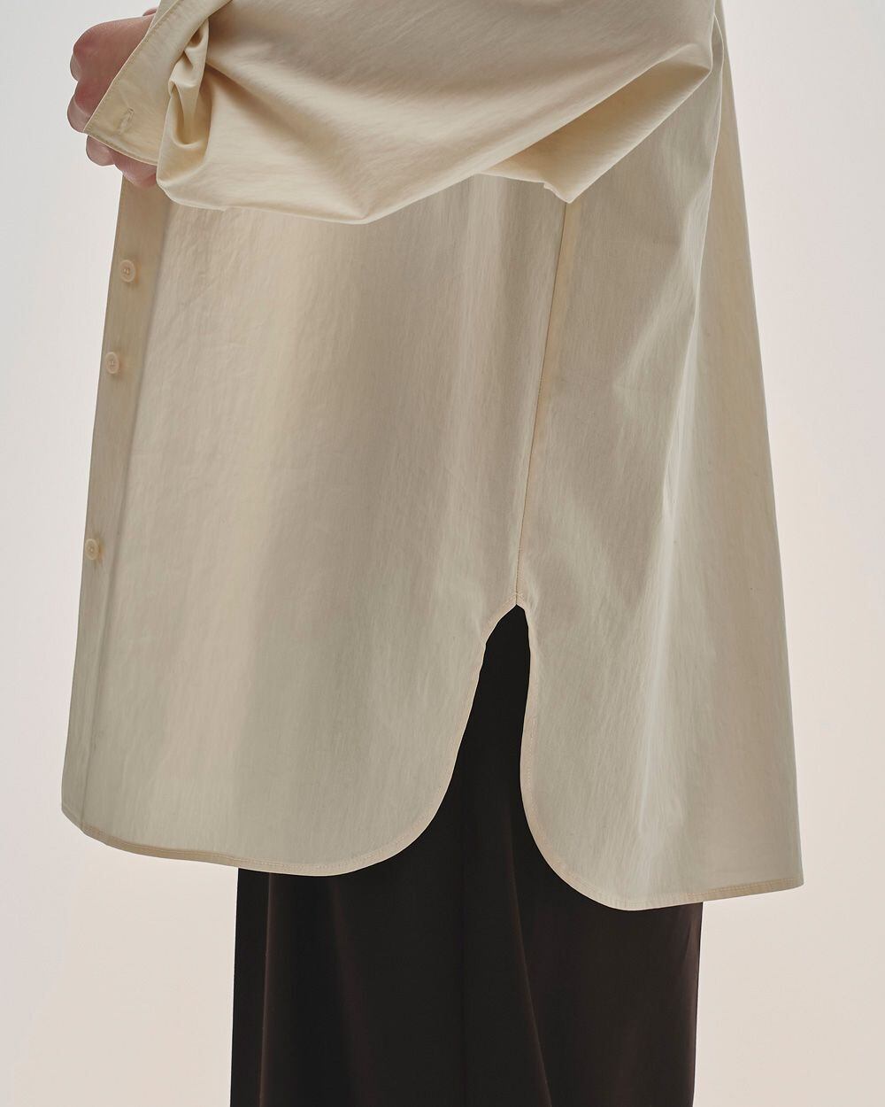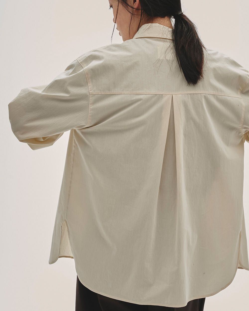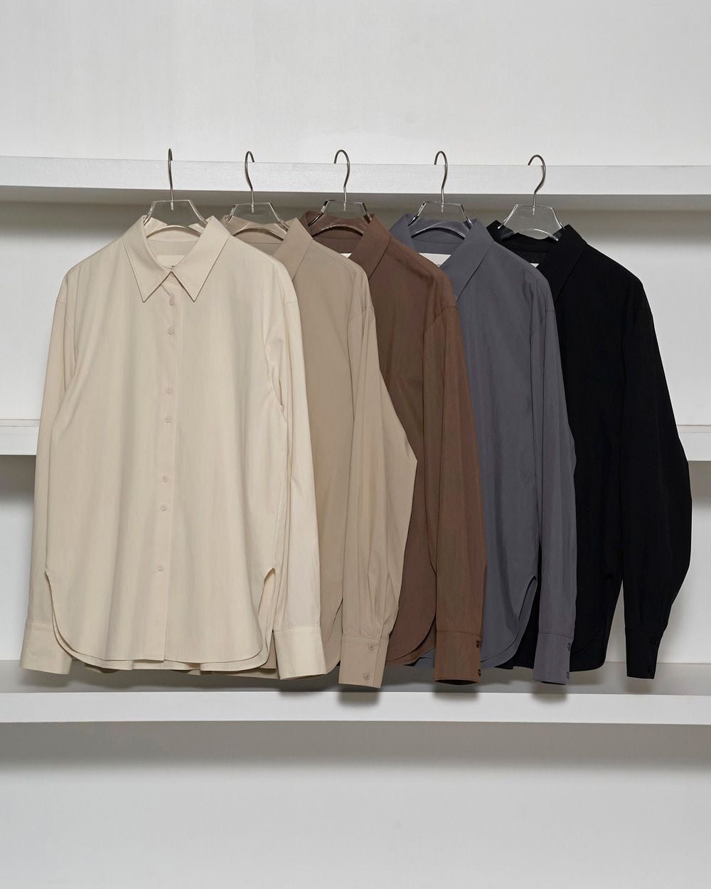 高密度に糸を打ち込んで織られた上質な国内のシャンブレー生地を使用したシャツ。ミニマルなデザインに仕立て、素材の良さを際立たせた一枚。ボトムスのシルエットを選ばず、様々なスタイリングに馴染むアイテムです。