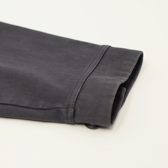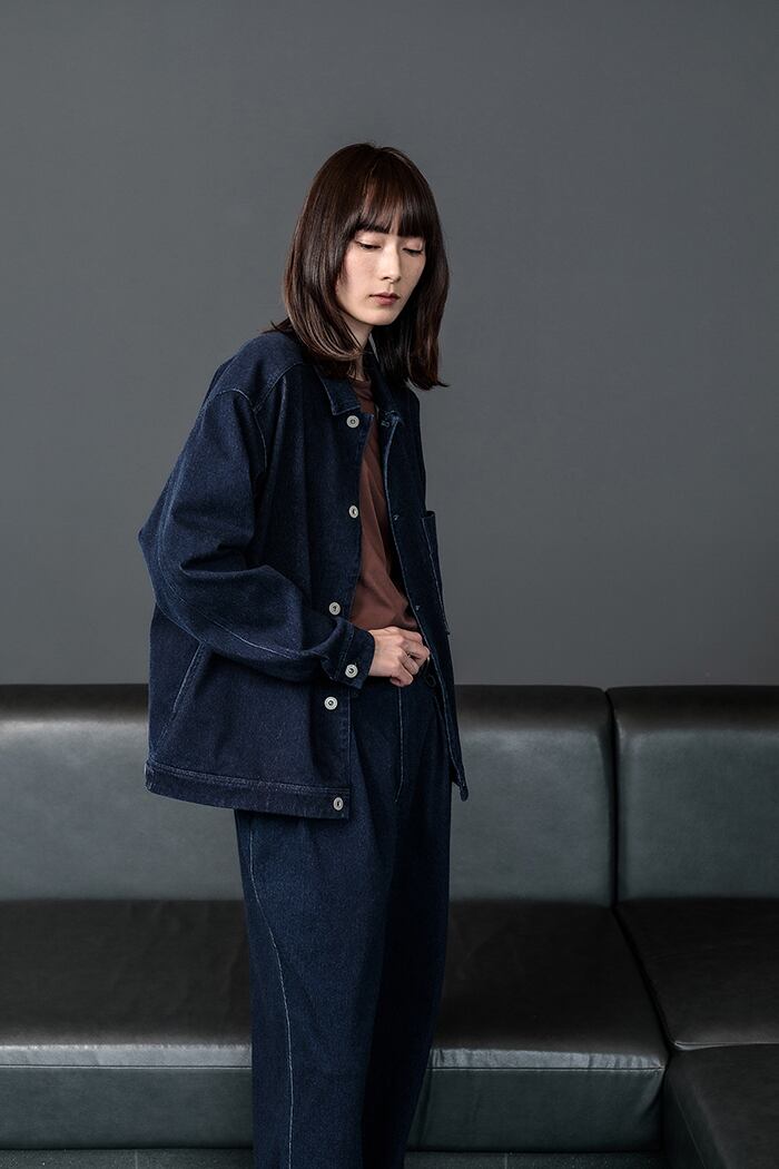 独自のストレッチインレイ素材を用いたトラッカージャケット。ハイゲージで編み立てることで、ムラ感が強くハリのあるシャープな表情に仕上げています。編み素材ならではの柔らかい肌当たりと伸縮性を持ち、優れた着心地を実現。前シーズンからヨークやポケットなど少しずつ削ぎ落とし、細かいディテール部分を見直すことで、より軽いデザインに刷新。それによりアウター使用は勿論のこと、冬はカーディガンの様にミドラーとして着用する事も可能となりました。