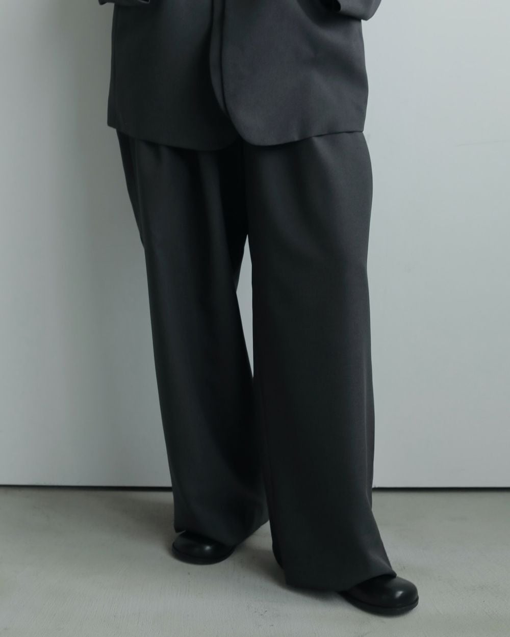 ストレッチ性のある平織りの杢調素材で仕上げたワイドパンツ。ダブルタックデザインで、シンプルなディテールとこなれ感の出るラフなシルエットが、コーディネートの幅を広げてくれる一本。しわになりにくく、肌触りが心地良い点も魅力。同素材のCollarless Over Jacketとセットアップで着るのもおすすめ。チャコールグレーは少しブルー味のあるなんとも言えない絶妙な色合いで、着るだけで洒落感の出るカラーです。