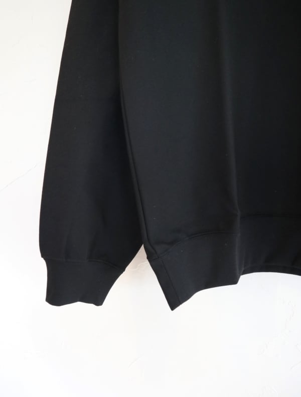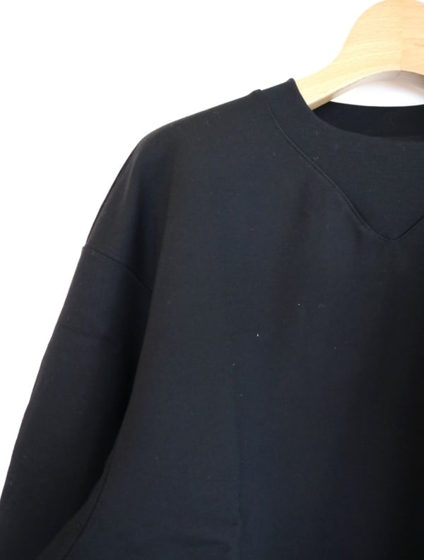シンプルながら存在感のあるネックのリブ切替をアクセントに、シルクのような光沢を持つ高級感のある素材を使用したプルオーバー。シルケット加工により強度や寸法安定性、吸湿性を備え、独特の張りと締まり感、反発感を表現しています。スウェットほどカジュアルにならず、見た目にも上品にまとまります。大人の上品なスタイルを楽しめる一着。