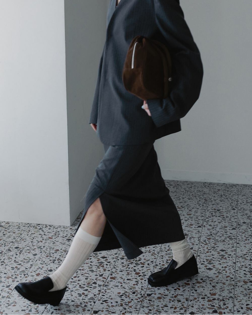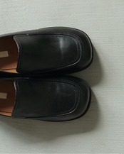 少しラウンドさせたトゥラインと程良いボリューム感がポイントのエコレザーローファー。シンプルな中に、さりげなくステッチを効かせたフロントデザインがポイント。ボリュームがあり、歩きやすい低めのヒール。カジュアルにも綺麗目にも幅広く合わせやすいです。スカートやワンピーススタイルに、靴下と合わせたコーディネートももおすすめです。