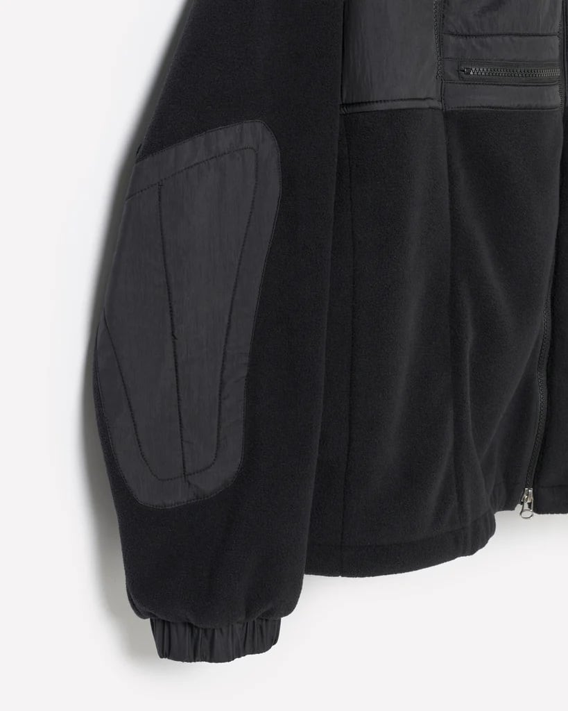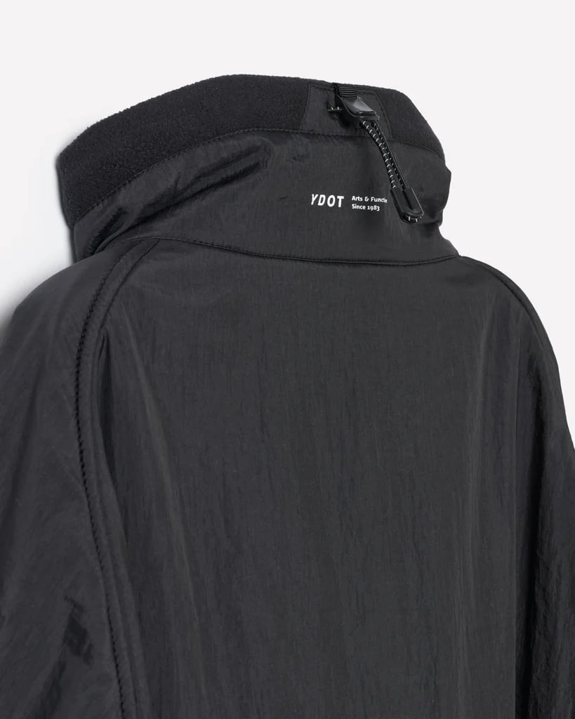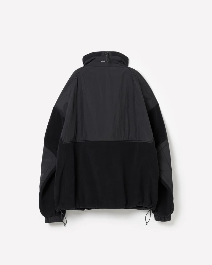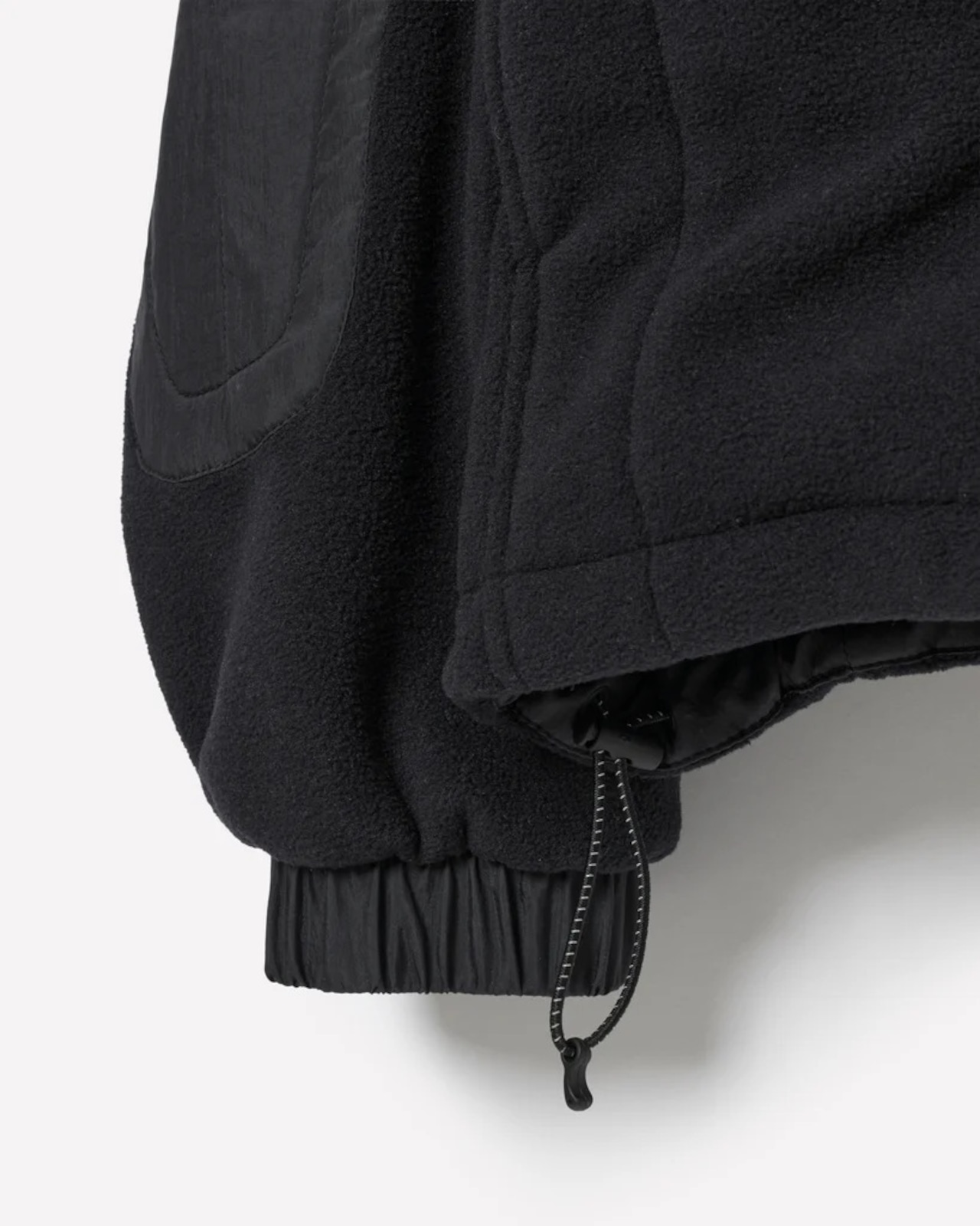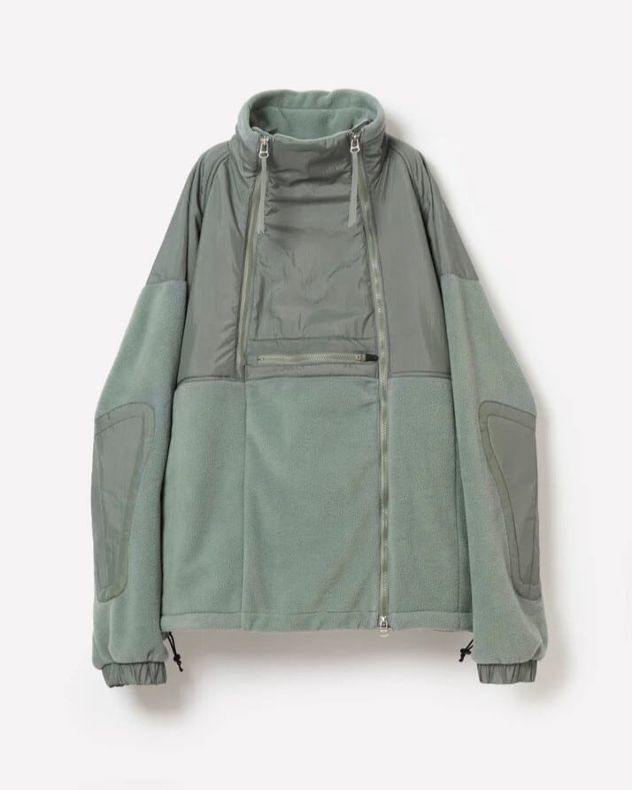 ダブルジップが特徴のフリースジャケット。ネック周りにゆとりわ持たせフーディーとの相性を考慮した設計になっています。両面起毛の肌触りの良いフリースとシワ加工を施したナイロンタフタの切り替えがアクセントになっています。ネックと裾はスピンドルによって調節できる仕様です。