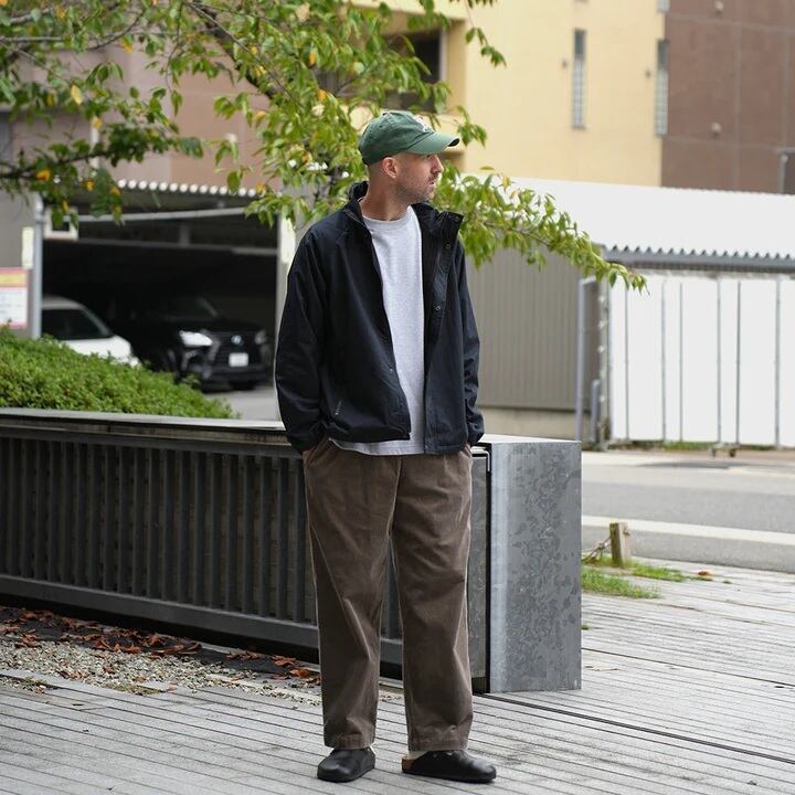 綿/ナイロンツイルのフルジップジャケット。アウターとして機能するように身巾・アームホールは広めに設定しつつも、オーバーシルエットにならないように着丈を調整。また裏地には高密度のフリースを配し、防寒性もプラスしています。デザインはLEVEL7をモチーフにアレンジ。表地はシャリっとした綿ナイロンの高密度ツイルで、ワッシャー加工によりシボ感がある表面がポイントです。