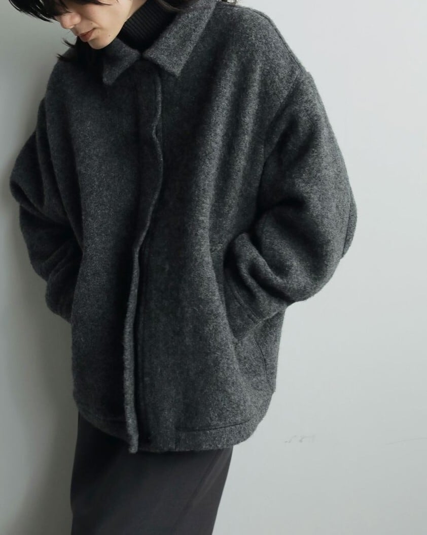 スライバー素材で仕上げたZIPブルゾン。柔らかくふくらみのある暖かな素材で、メンズライクに着れるシンプルなデザイン。少し丸みを持たせた袖のシルエットや、エルボーパッチデザインがポイントです。カジュアルなスタイリングにはもちろん、スカートやワンピースなど、甘めのスタイリングにミックスさせるのもおすすめです。
