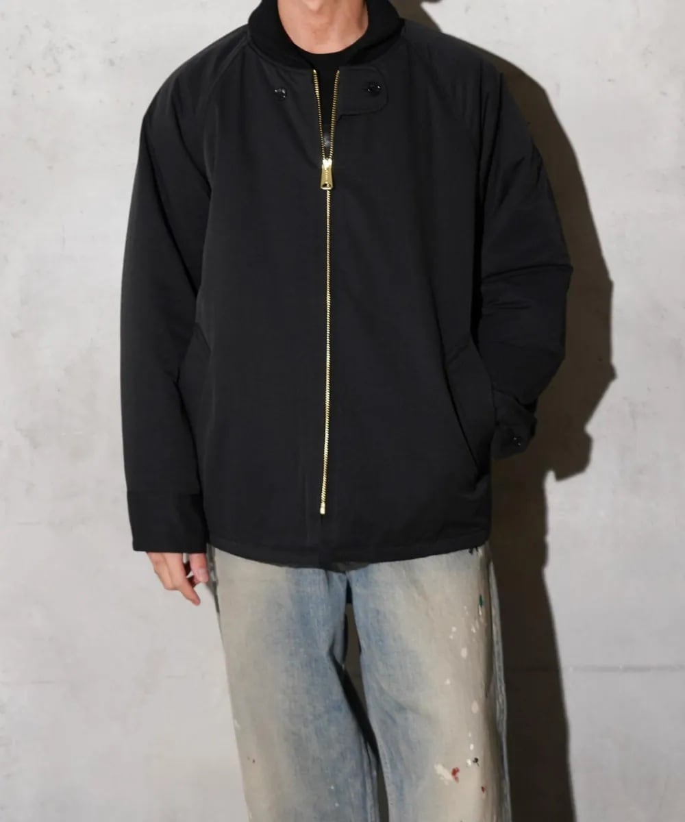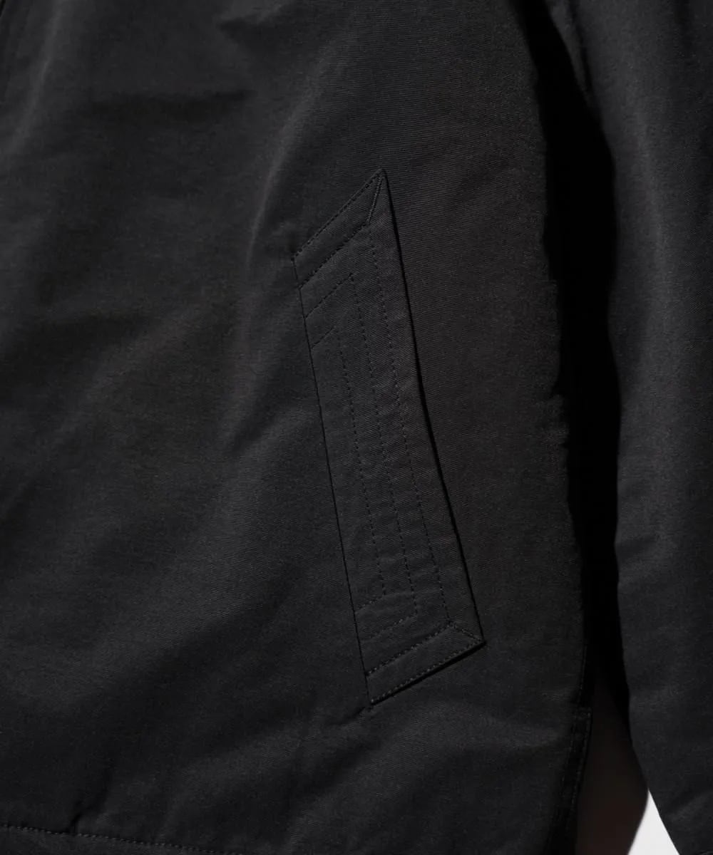 70年代のアーカイブをベースにアップデートしたファラオコート。ファラオコートとは1973年公開のヒット映画「アメリカン・グラフィティ」に登場するファラオ団が着用していたことから人気を博したジャケットです。お尻までかかる使い勝手の良いミドル丈、身幅にゆとりを持たせたオーバーサイズのシルエットです。ツヤ感とハリ感、撥水性に優れたナイロンコットンウェザー素材です。中綿にはサーモライトを使用、軽量かつ保温力の高さが魅力 ・サイドポケット2つ ・ライニングにはボディ、袖まで中綿を配し、温かく袖通しの良さも特徴 ・ラグランスリーブ ・ジップは創業1936年から続くアメリカのIDEAL社製ファスナーを使用。