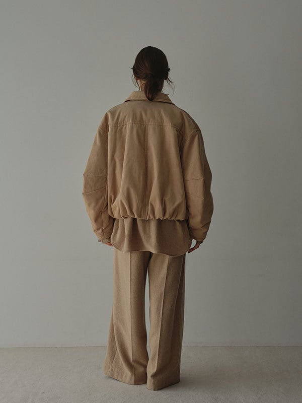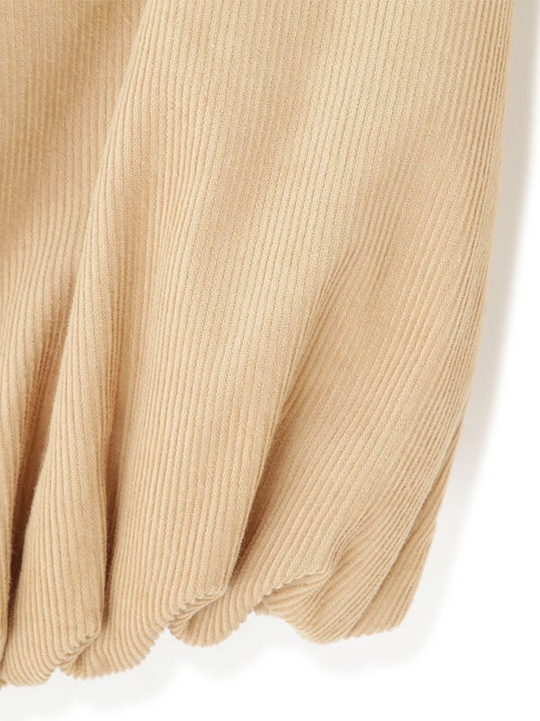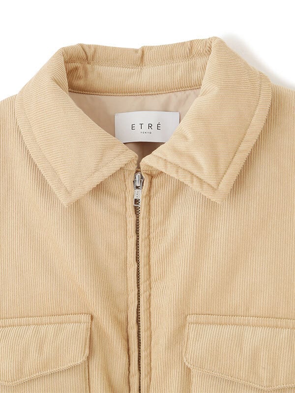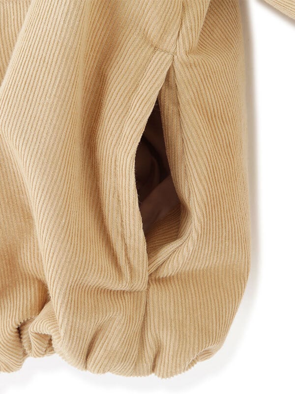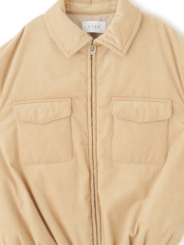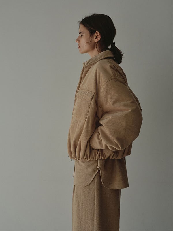 シーズンムードを引き立てるコーデュロイが魅力の中綿入りブルゾン。柔らかな風合いとナチュラルな表情が特徴のコットンのコーデュロイ生地を使用。中わたにはポリエステル綿を使用し、軽やかさと保温性を両立。あえて中綿の厚みを抑えることで、秋から春先までロングシーズン活躍します。裾に向かって丸みを帯びるバルーンシルエットが特徴で、立体感のあるフォルムが着こなしにニュアンスを加えます。袖にもダーツを施すことで、着用時に自然とふくらみが出るように設計されており、全体のシルエットにほどよいモード感と存在感をプラス。