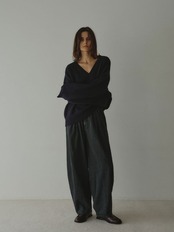 日本製のライトオンスデニムを使用、厚すぎず柔らかな風合いで、分量感がありながらも軽やかな履き心地を実現しています。丸みを帯びたワイドフォルムながらも、腰まわりはすっきりと仕上げており、バランス良く着こなせる一本。ボディラインを拾いすぎず、体型カバーにも優れています。ボリュームニットやブラウスをウエストインしてメリハリを出したり、ショート丈トップスと合わせて脚長効果を意識したスタイリングもおすすめ。スニーカーでラフにまとめても、ブーツでモードに寄せても、シルエットの美しさが引き立ちます。いつものデニムに少しの変化を加えたいとき、コーディネートに立体感を出したいときに選びたい、大人のワードローブに寄り添う一本。