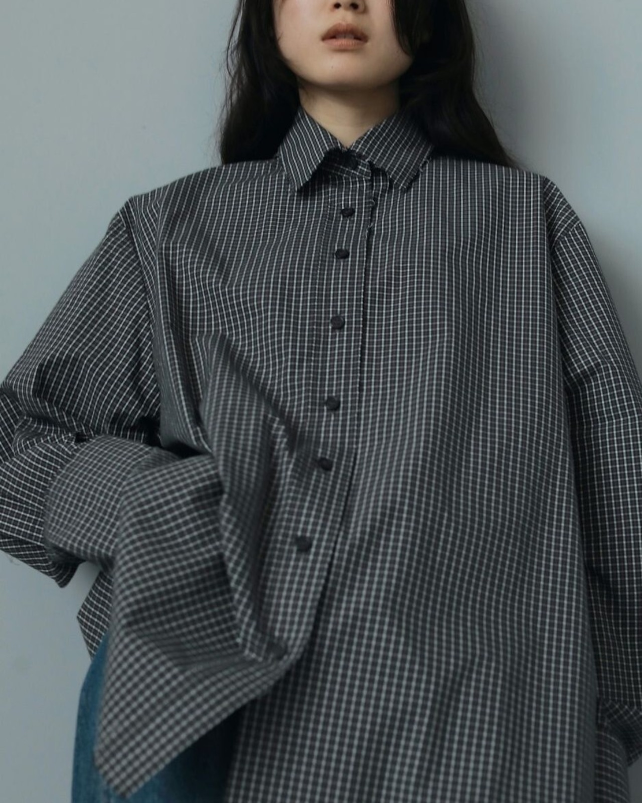ボリュームたっぷりのリボンタイがポイントのオーバーシャツ。少しハリのある素材で、しっかりとリボンのフォルムが出るよう仕上げました。リボンは取り外しても着用可能なので、シンプルなシャツとしても着回していただけます。端は裁ち切りで仕上げ、太めのカフスに四つボタンがアクセントになり、リボンを外してもスタイリング映えする一枚です。レイヤードするだけでコーディネートが華やかになります。