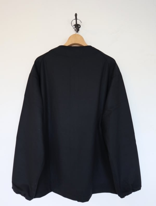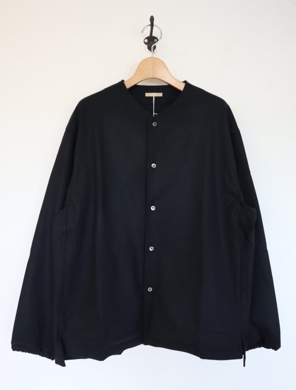 厚みを抑えた微起毛で柔らかいポリエウステル/ビスコースのストレッチツイル生地を使用。両面に微起毛を施しカシミアのような触り心地に仕上げた上品で温かみのある素材感です。身幅にゆとりをもたせたリラックスシルエット。サイドにシームポケット付き、袖口はゴム仕様になっています。羽織りとしても、冬のインナーシャツとしても活躍する一枚です。同素材のパンツとのセットアップ着用おすすめです。