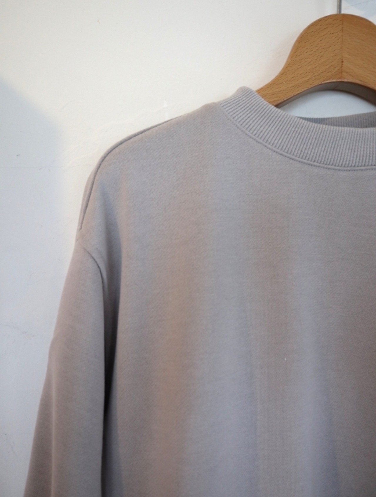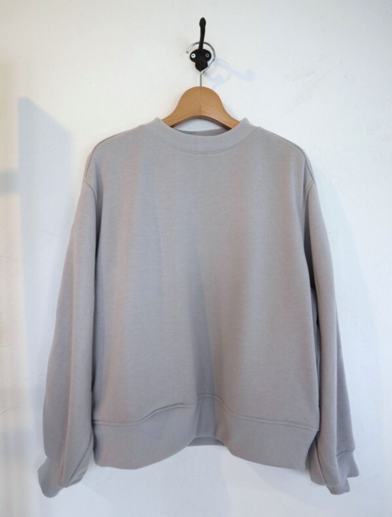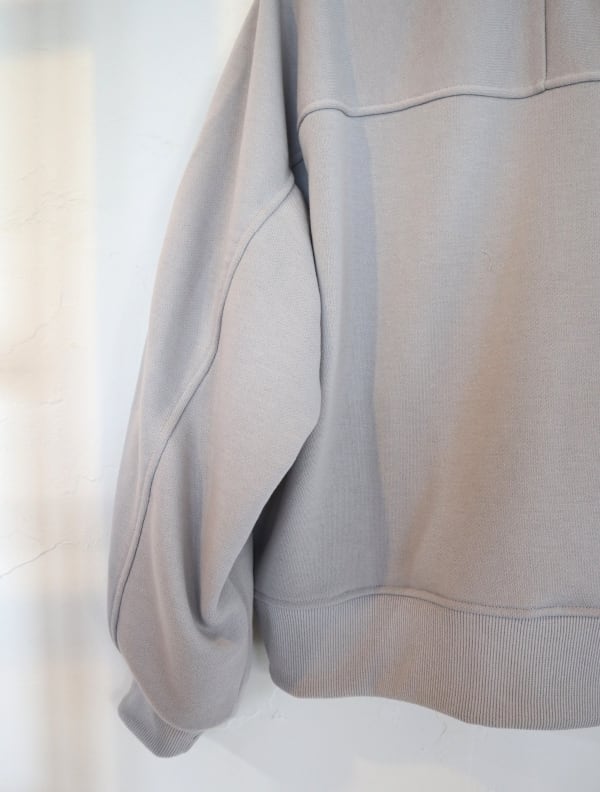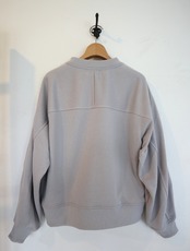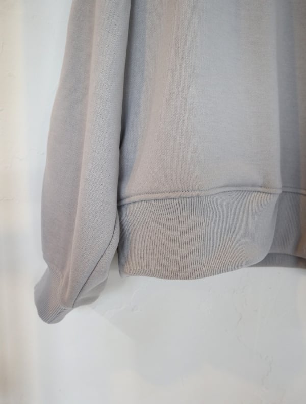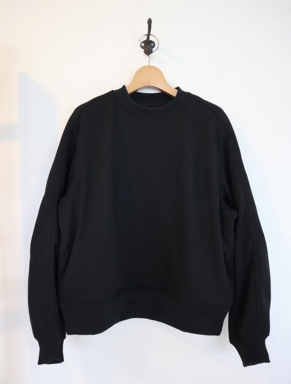 クルーネックスウェエット。ソフトな膨らみ感のある軽量のポリエステル裏毛スウェット生地を使用。形態安定、給水速乾、毛玉防止、UVカット素材です。オールシーズンで着れる軽量中厚生地。身幅にゆとりをもたせたリラックスシルエット。腕周りの切り替え部に太めのステッチを入れてデザインのアクセントに。サイドにシームポケット付き。シンプルで合わせやすいトップスです。※1番サイズはレディースになります。