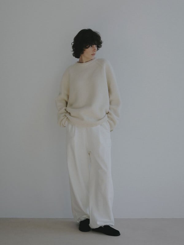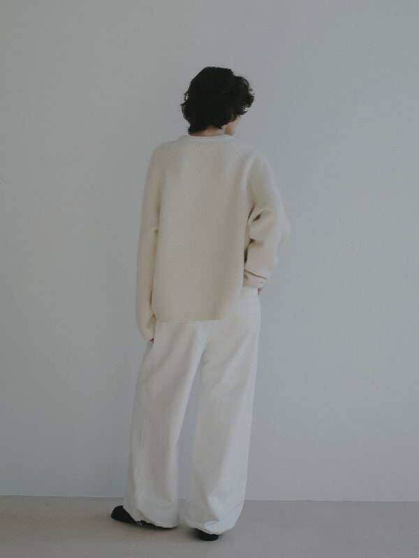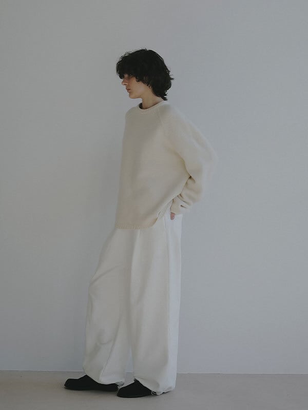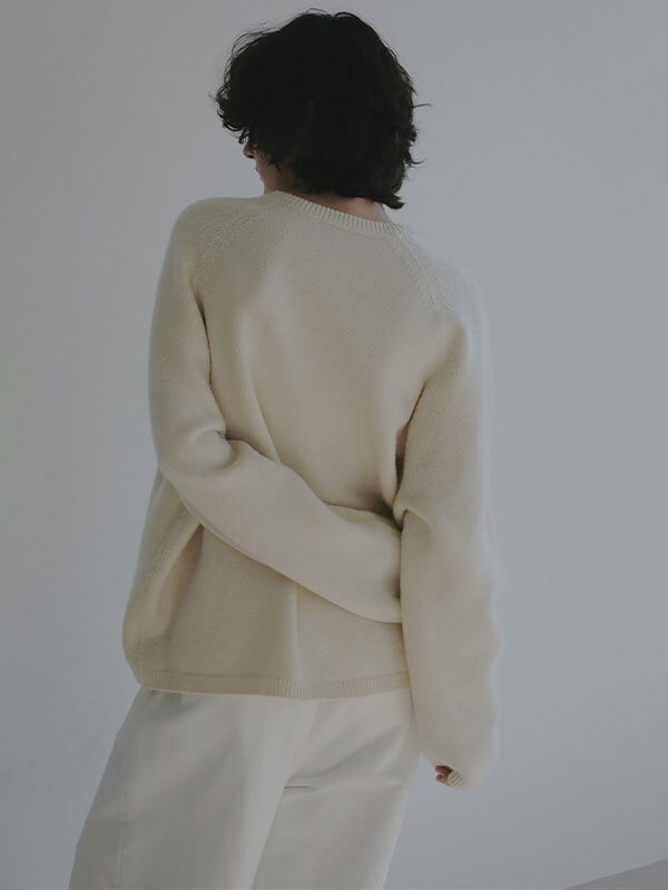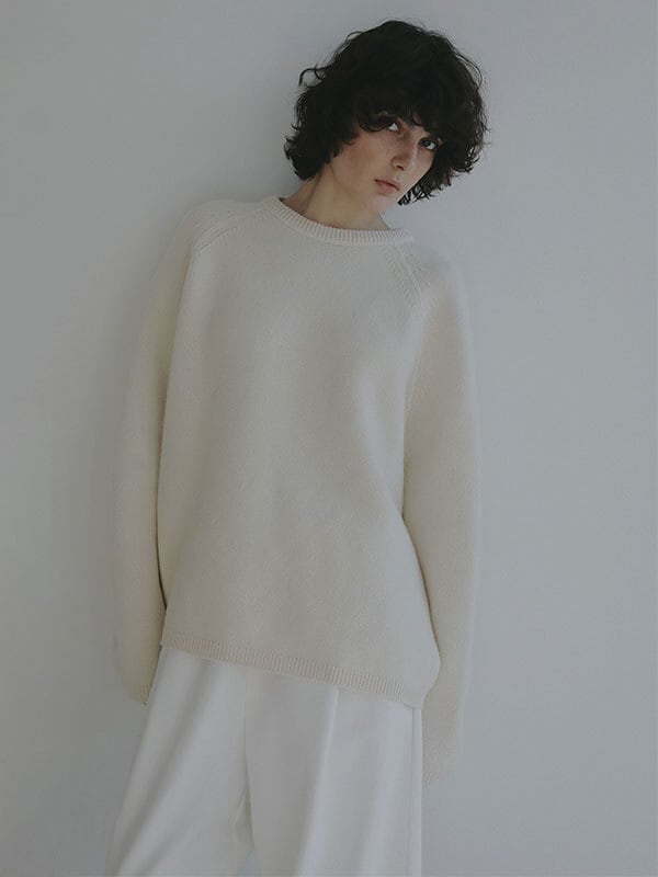 ウール100%ならではのやわらかな風合いが、肩の力を抜いた大人の佇まいを演出するリバーシブルニットプルオーバー。素材には上質なウール糸を使用、素肌に触れても心地よいなめらかさと軽やかな温もりを両立。天竺編みの表情豊かな表側と、異なる編み地を施した裏側で印象に変化をつけ、 気分やスタイリングに合わせて表情を選べる2way仕様に仕上げています。ウール特有のふっくらとした質感がありながらも厚みを抑え、ロンT感覚で取り入れやすい点も魅力。シルエットはほどよくゆとりを持たせたボックスラインを採用し、肩の落ちたラインが自然な抜け感をプラス。身体のラインを拾いすぎず、リラックス感がありながらもどこか洗練された印象を保ちます。ネックラインや裾、袖口はミニマルにまとめ、リバーシブルデザインでありながらもすっきりとした見え方に。編み地の切り替えによる立体感が、シンプルな中に奥行きを与えています。一枚でさらりと着るのはもちろん、シャツをレイヤードして裾や襟元にニュアンスを加えるスタイリングもおすすめ。ワイドパンツや落ち感のあるスラックスと合わせれば、肩の力を抜いた都会的なバランスに仕上がります。シーズンを通して着回しやすく、ワードローブに自然と馴染む一着です。