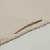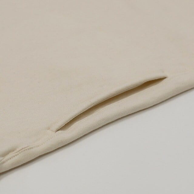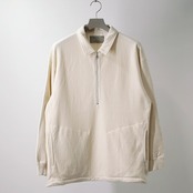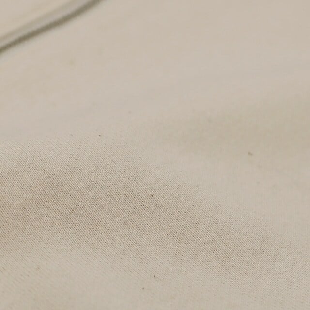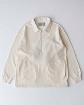 オーガニックコットンの裏毛を用いたジップポロのプルオーバー。オーコット®️とはトルコのイズミール地方で農薬、肥料の厳格な使用基準を守り栽培されたオーガニックコットン。生地の特徴を活かし、身頃は地の目を90度倒したヨコ地使いをし、袖は従来通りのタテ地使いをしています。カジュアルな素材ですが襟には月腰を付け、裏面をスレキ使いする事で、もたつきの無い表情に仕上げています。ジップの長さも若干長めに設定し抜け感を出し、耐食性に優れたメタルファスナーを用いています。裾にはリブを使用せずにドローコード仕様にしているので、お好みのシルエットにする事ができます。ウエストにはシームポケット有り。