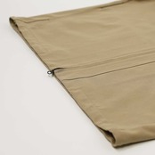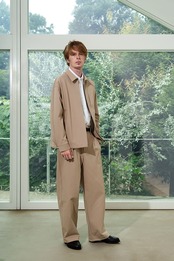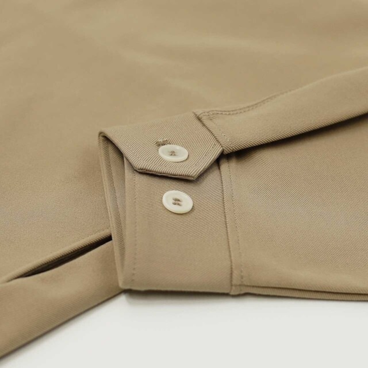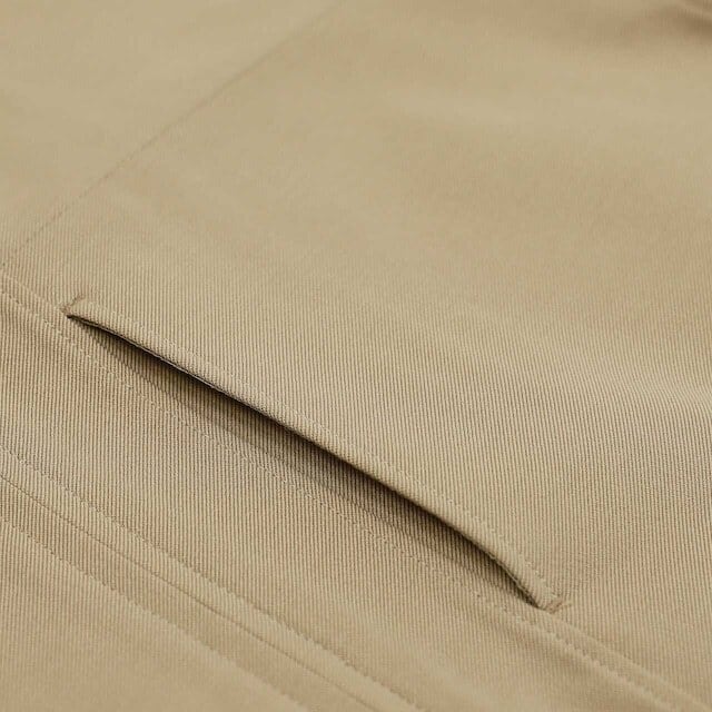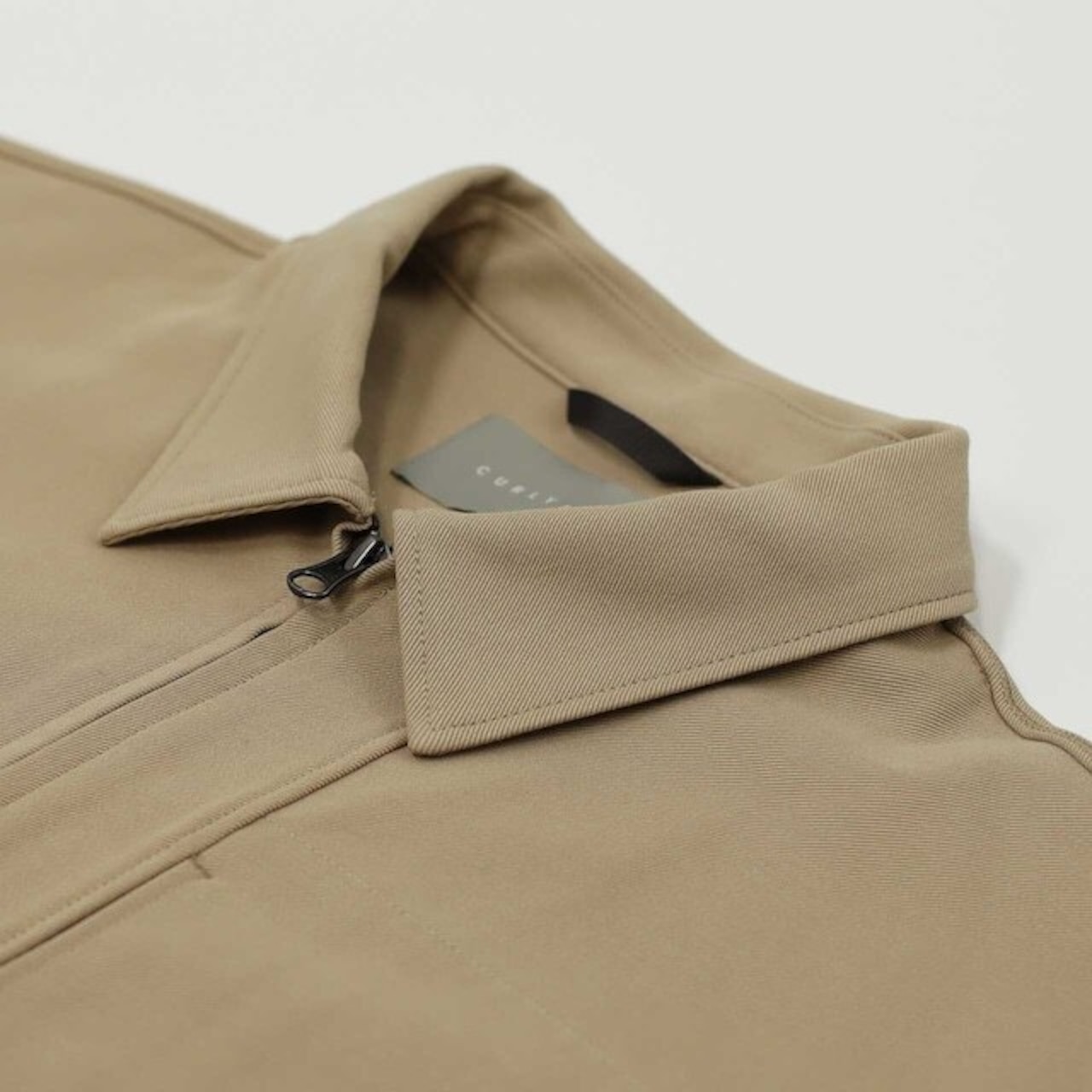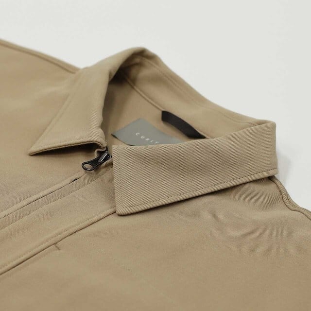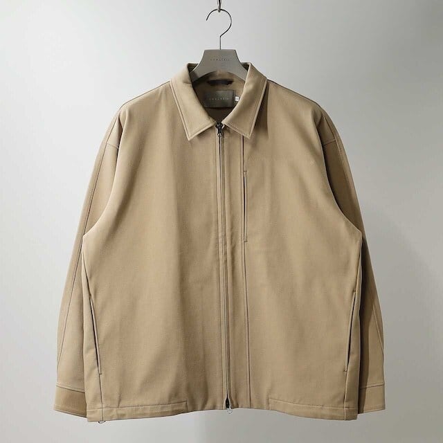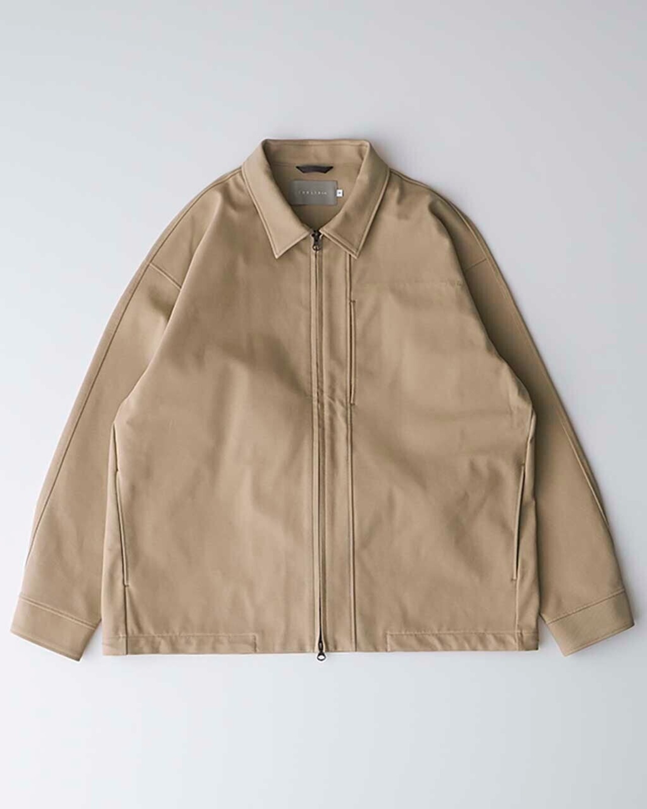 コットンにポリエステルをブレンドしたオリジナルのハイゲージダブルニット素材を用いたジップアップブルゾン。いわゆるチノクロスと呼ばれるオーセンティックな生地を編み素材で再現することにより、軽量でシワになりにくく動き易い特性を持った新たな”ニットチノ”を開発しました。スーピマ混60/-と東レ(株)のPBT繊維、サモーラ、を交編し、番手適合ゲージ限界までハイゲージで編み立てました。デザインはショート丈で若干のリラックス感を持たせたシルエット。前袖はシャツ袖で後ろ袖がヨークスリーブのスプリットスリーブ仕様。裾のドローコードをブラウジングしてシルエット変化を楽しめます。ウエスト両サイドと左胸にはシームポケット有り。