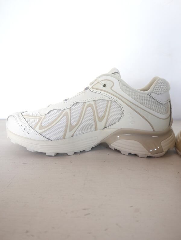 Salomon の DNA と XT のデザイン系譜を受け継ぐ XT-Whisper は、独特の質感や、レイヤー構造の高級感のある仕上げを特徴としています。コントラストのあるディテールが際立ち、リッチな素材を用いたアッパーがモダンな印象を与えます。また、独自の波状の SensiFit™ と Quicklace™ を組み合わせることで、フィット感のある信頼できるホールド感を実現しています。