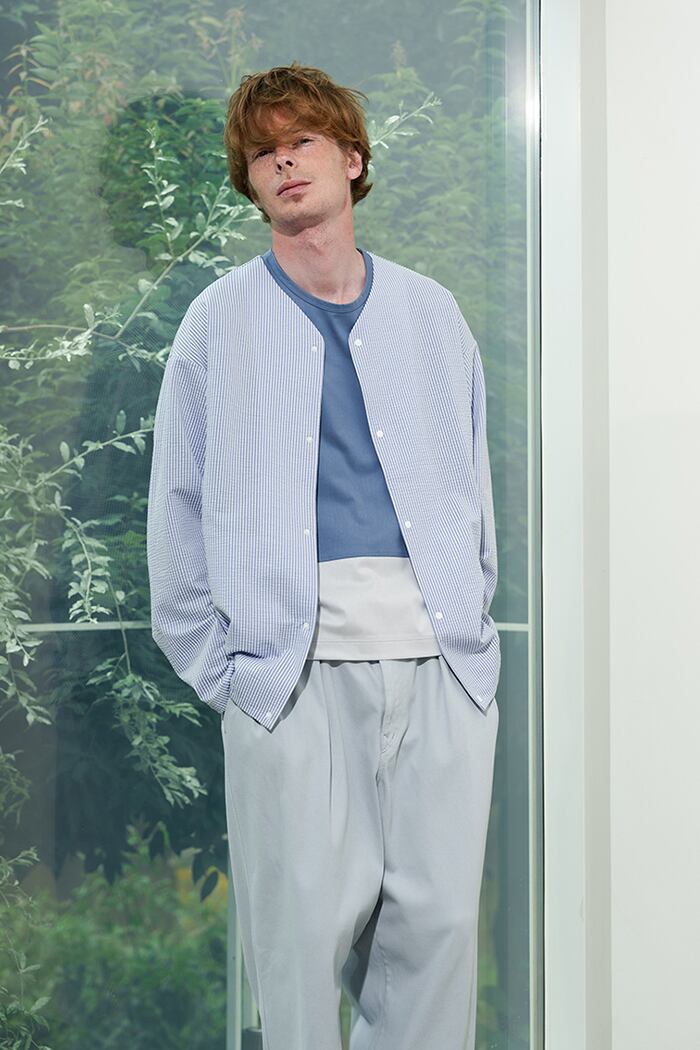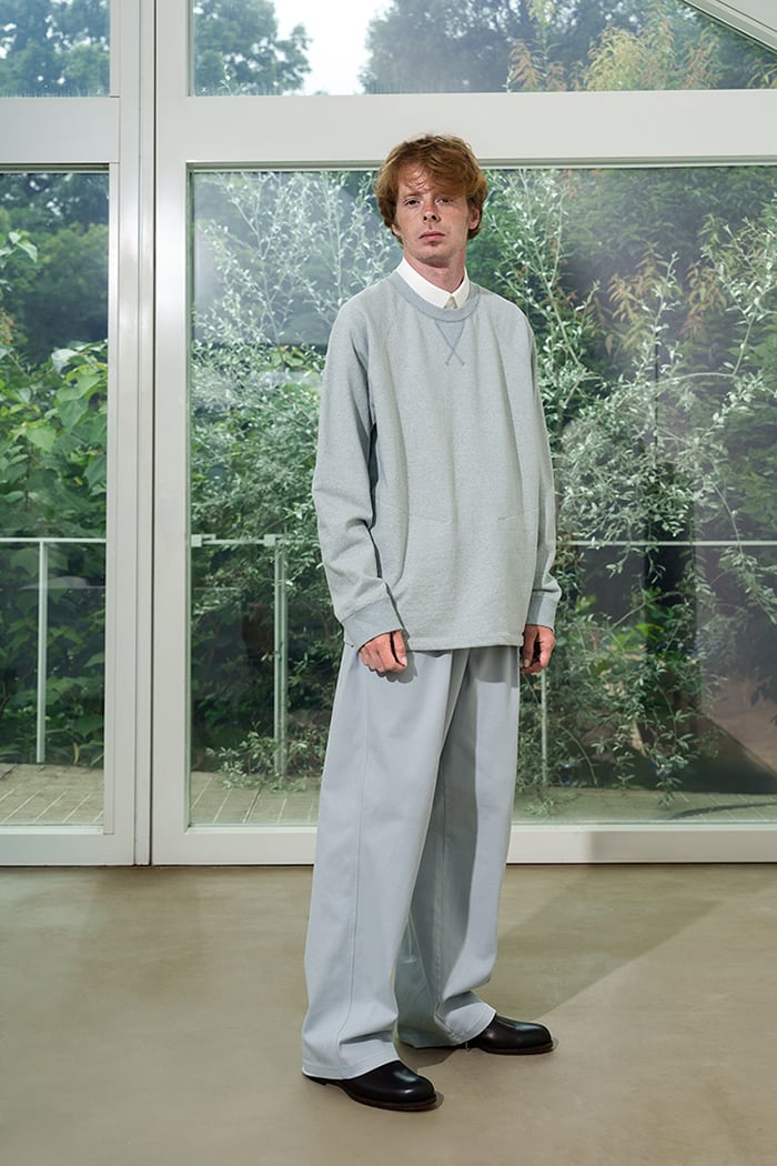 独自のストレッチインレイ素材を用いた2タックワイドパンツ。ハイゲージで編み立てることで、ムラ感が強くハリのあるシャープな表情に仕上げています。編み素材ならではの柔らかい肌当たりと伸縮性を持ち、優れた着心地を実現。ウエストは2タック、後のみイージー仕様で腰周りにしっかりとゆとりを持たせたワイドスラックスシルエット。ウエストベルトを排除し、ベルトループを長く取っているのがアクセントで、タックインスタイルもお勧めです。型紙のベースはスラックスタイプを採用。
