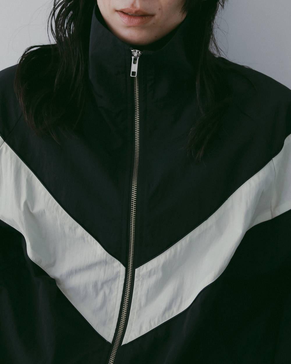 スポーティーなムードをベースに、都会的なバランスで仕上げたナイロンブルゾン。ゆとりのあるサイジングが生むリラックス感に、フロントから肩へと走るVラインの配色切り替えが程よいアクセントを添えます。切り替えにはコードパイピングを施し、細部の表情にもこだわりました。 ラフにカジュアルにスタイリングするのはもちろん、あえて甘めのスカートやワンピースと合わせて女性らしくまとめるのもおすすめです。