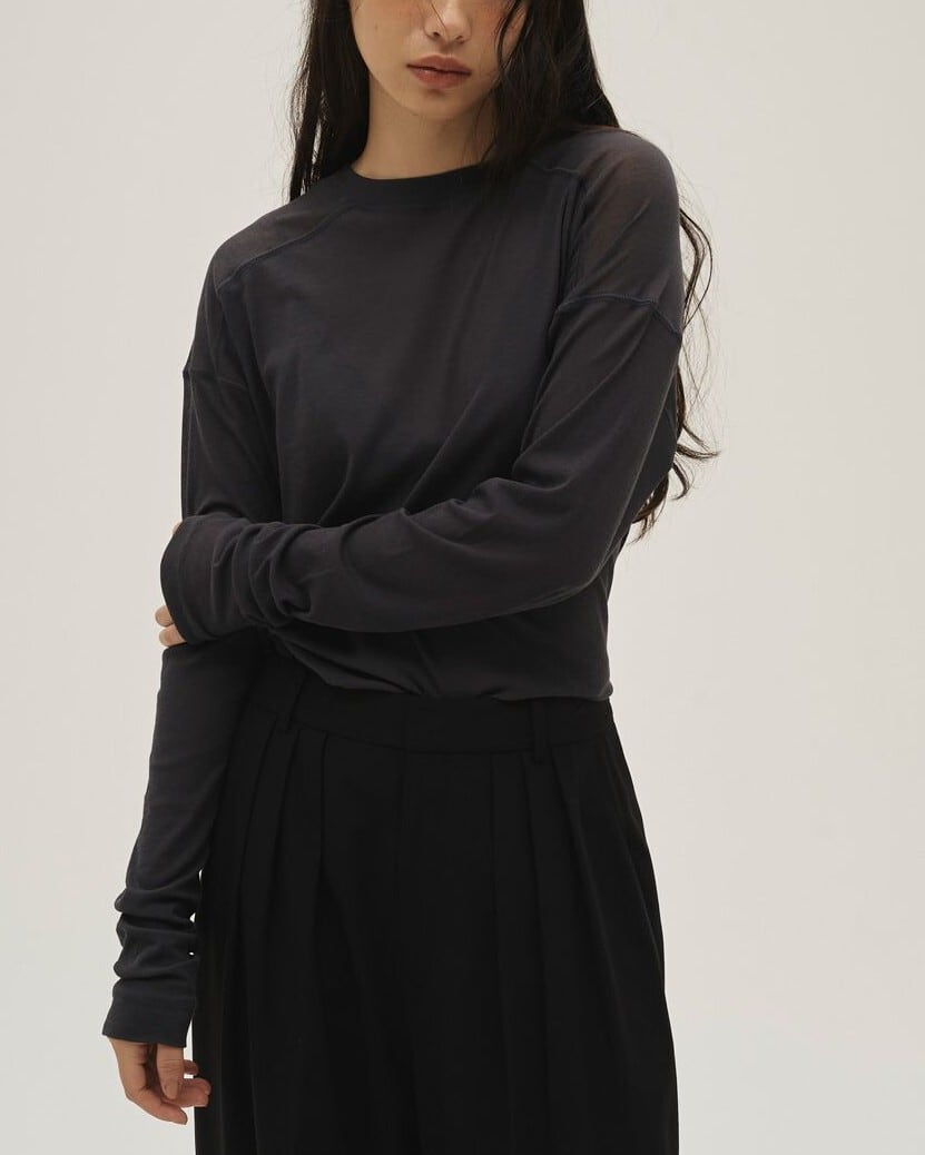 肌馴染みのいい上質な生地を使用したロングTシャツ。ゆるっとしたサイズ感で、ステッチワークが目をひく一枚。ほどよい透け感があり、軽やかで抜けのある雰囲気に。一枚ではもちろん、レイヤードスタイルにも活躍するシーズンレスに着回しの効くアイテムです。