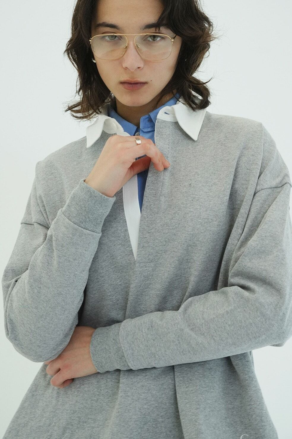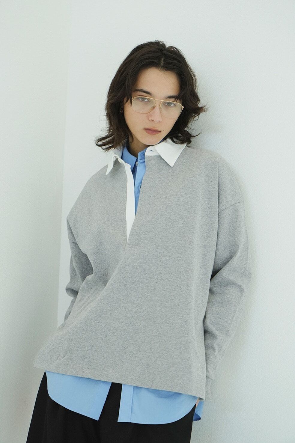 ゆったりとしたサイジングと深めのスキッパーデザインが魅力の、CL LOGOシリーズのラガーシャツ。空気の力で紡績した空紡糸を使用し、膨らみを持たせながらもドライタッチで程よいハリ感のある風合いに仕上げました。着用を重ねるごとに味わいが増し、メンズライクなスタイルを楽しめます。サイドスリットが動きを添え、左下に施したCLロゴがさりげないアクセントに。デイリーに取り入れやすく、抜け感のあるスタイリングを叶える一枚です。