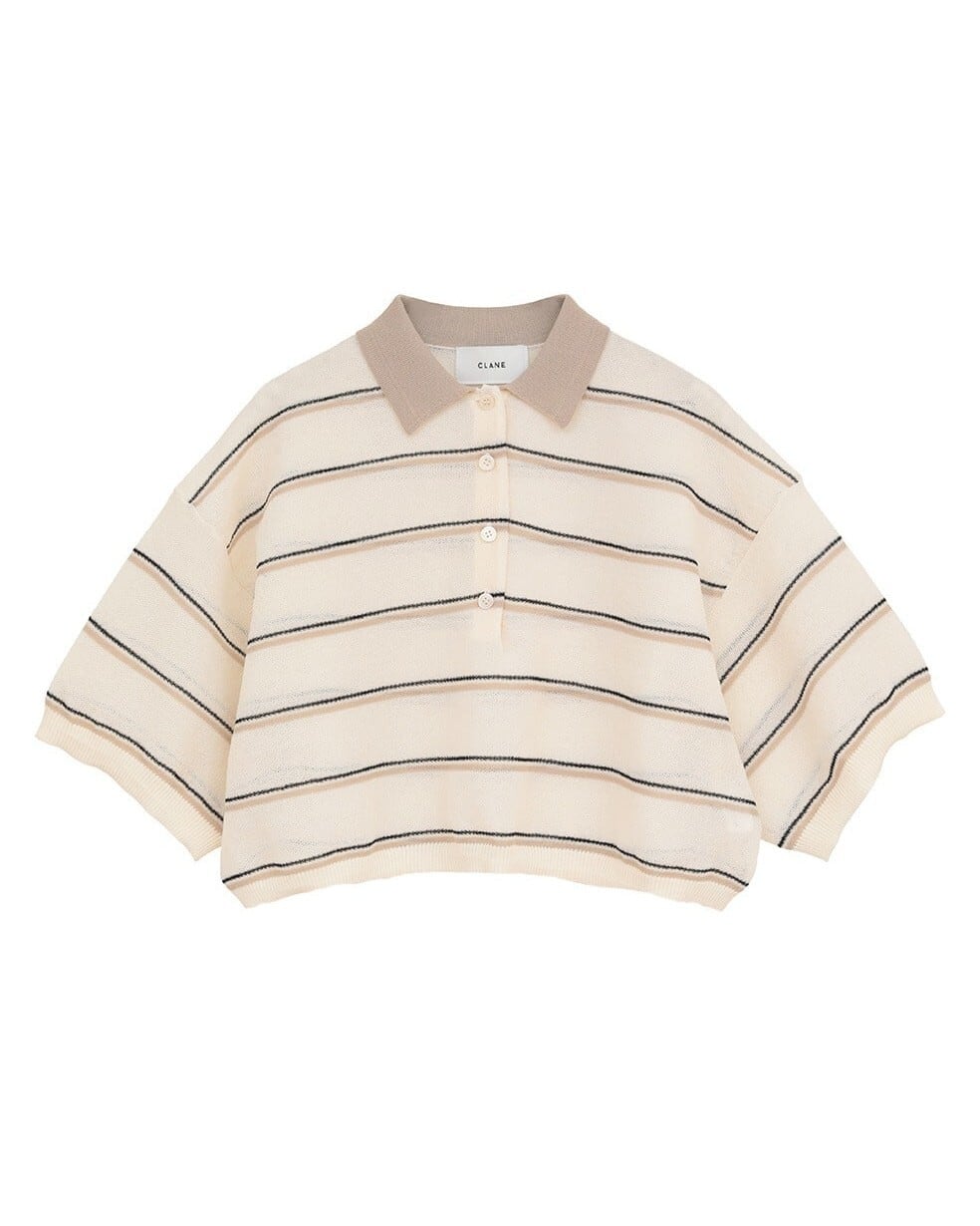 CLANE(クラネ) SPONGY SHEER POLO KNIT TOPS IVORY