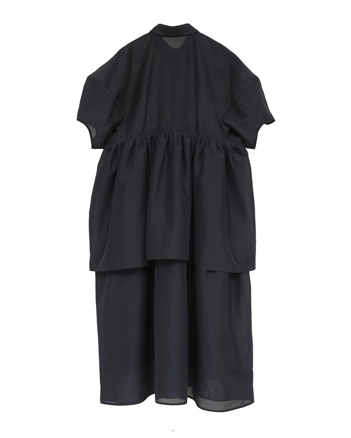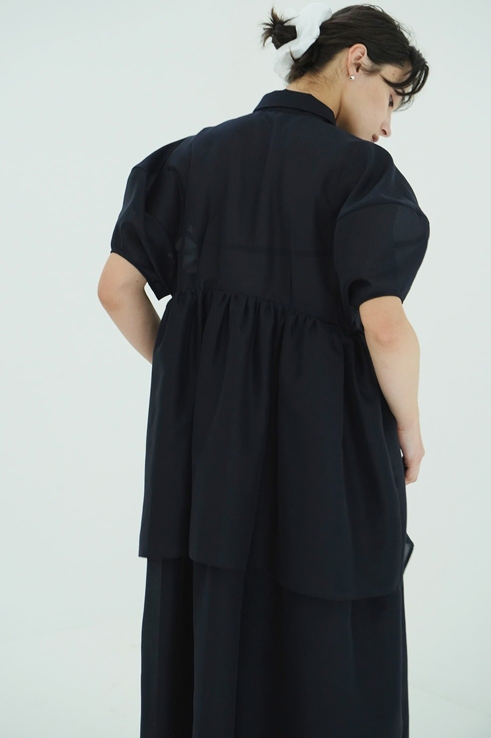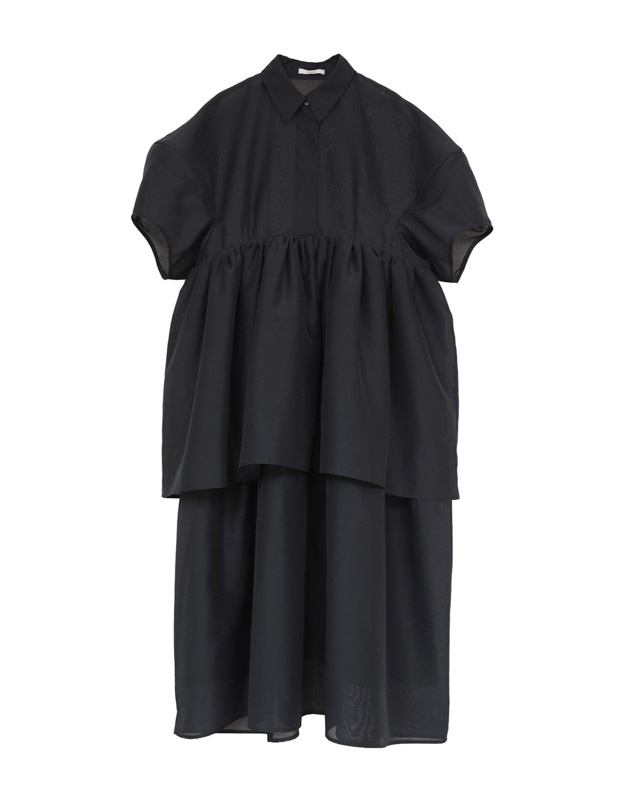 ハリ感と適度な透け感のある、上品なオーガンジー素材が女性らしさを引き立てるワンピース。控えめな光沢で、モードながら上品な印象を演出します。スカート部分はティアードになっており、動く度にふんわりと広がる美しいシルエットがポイント。丸みのあるフォルムスリーブがCLANEらしく、二の腕もすっきりとカバーしてくれます。一枚で主役になるデザインながら、軽やかな透けで抜け感も演出。シンプルな中にモードなエッセンスを感じさせるシルエットで、大人の女性らしい洗練されたスタイルを叶えます。