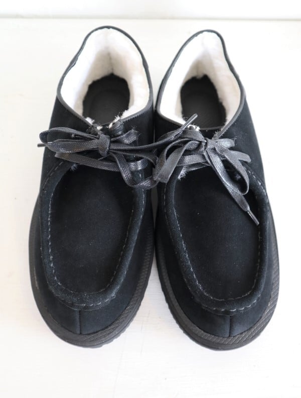 ライニングにあたたかなボア素材を用いたレースアップシューズ。