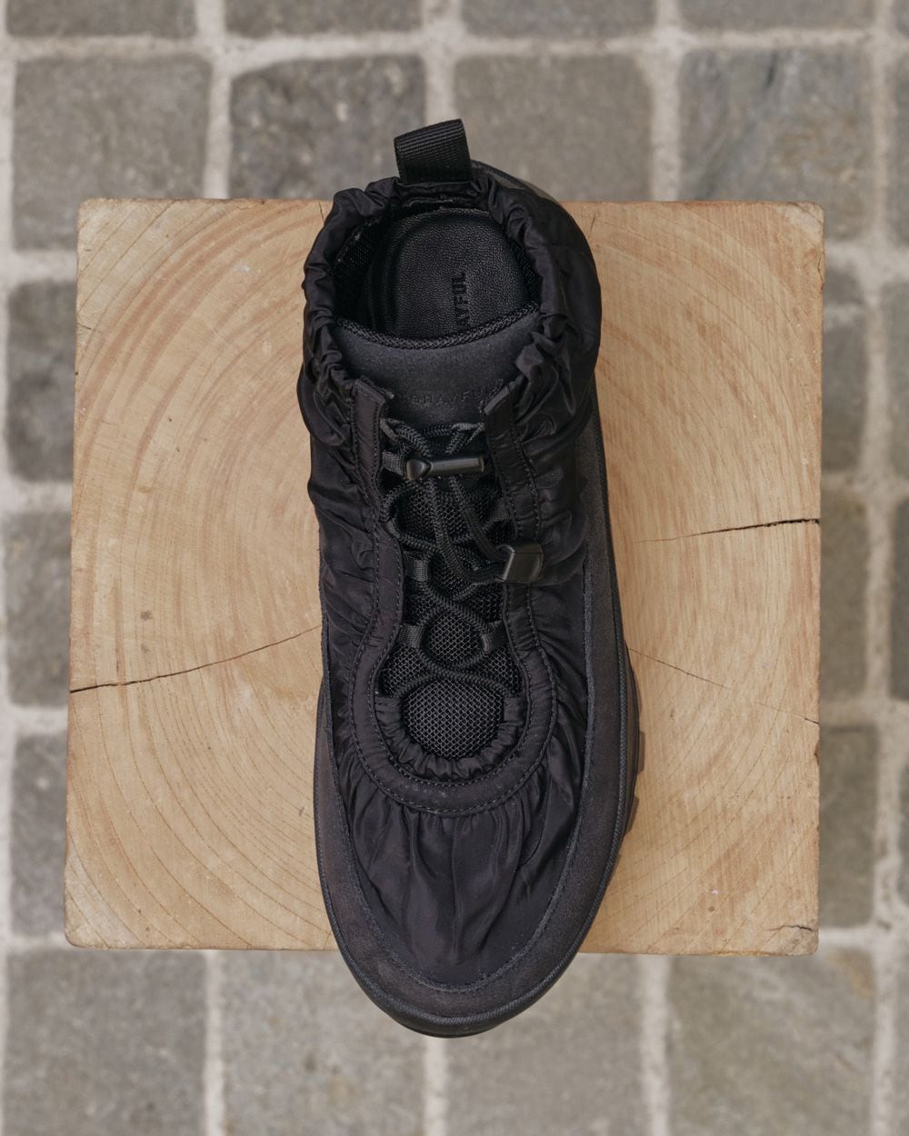 ビブラムソールのTODAYFULオリジナルスニーカー。3種類の生地を贅沢に使用しています。着脱しやすいゴム状のコードストッパーはフィット感の調整が可能。全体にギャザーを寄せたアッパーがほどよいボリューム感を演出。足首がすっきりと見える履き口で、パンツ スカートとわず、幅ひろいスタイリングに馴染みます。