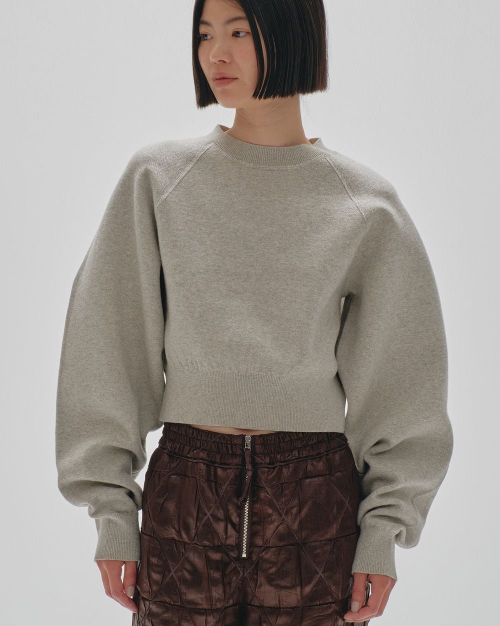 度目を限界まで詰めて肉厚に編み上げたヘビーウェイトなラグランニット。ネックラインに施したステッチワーク、ほどよく膨らんだエルボーパッチ付きの袖など、こだわりの詰まった一枚。短めの着丈なのでハイウェストなボトムスと好相性です。